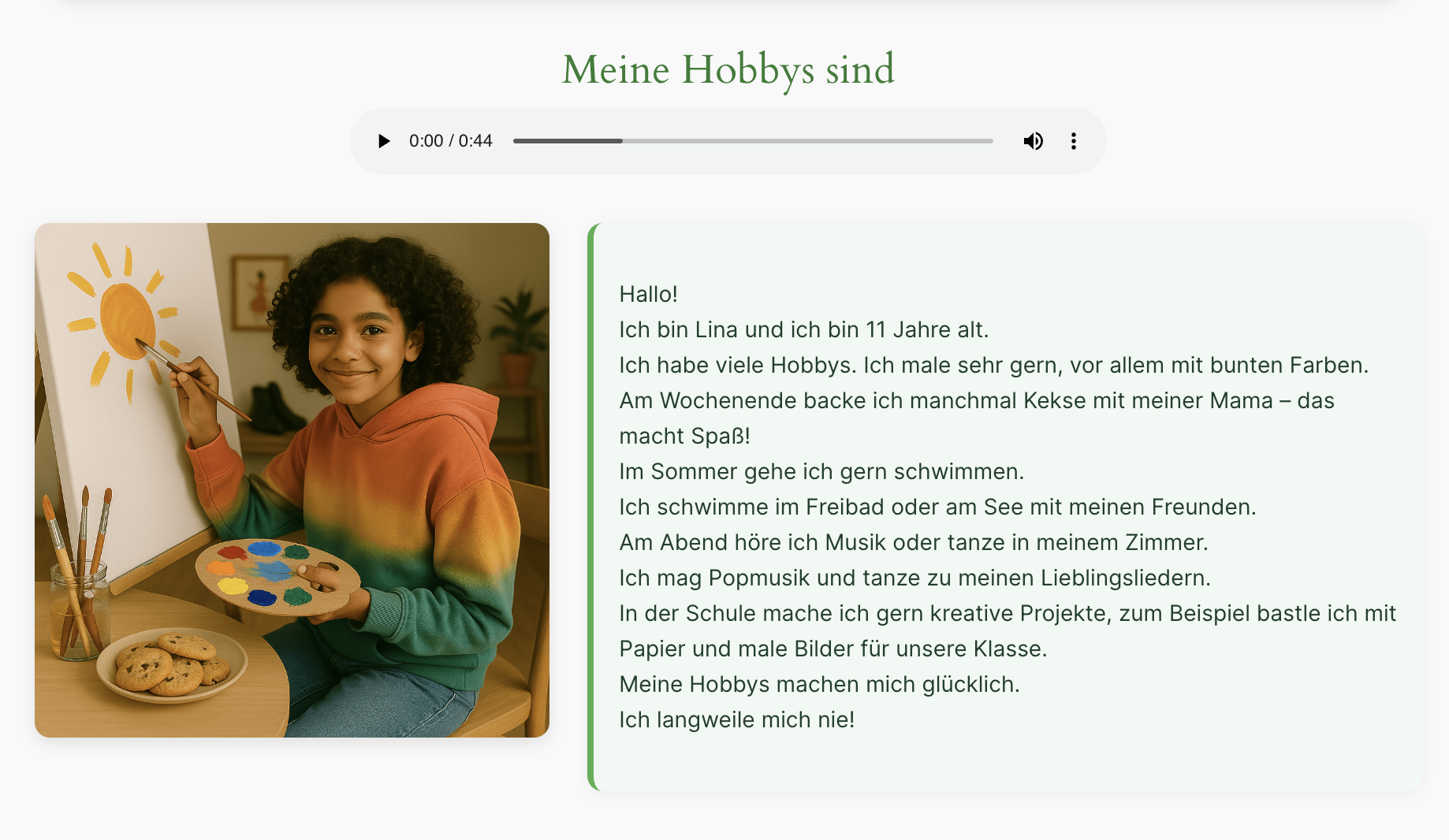 Fragen zum Text – Meine Hobbys sind