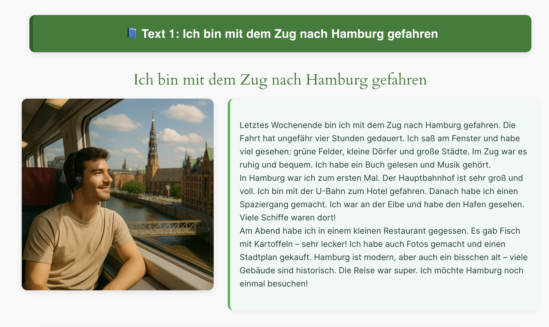 Fragen zum Text – Ich bin mit dem Zug nach Hamburg gefahren