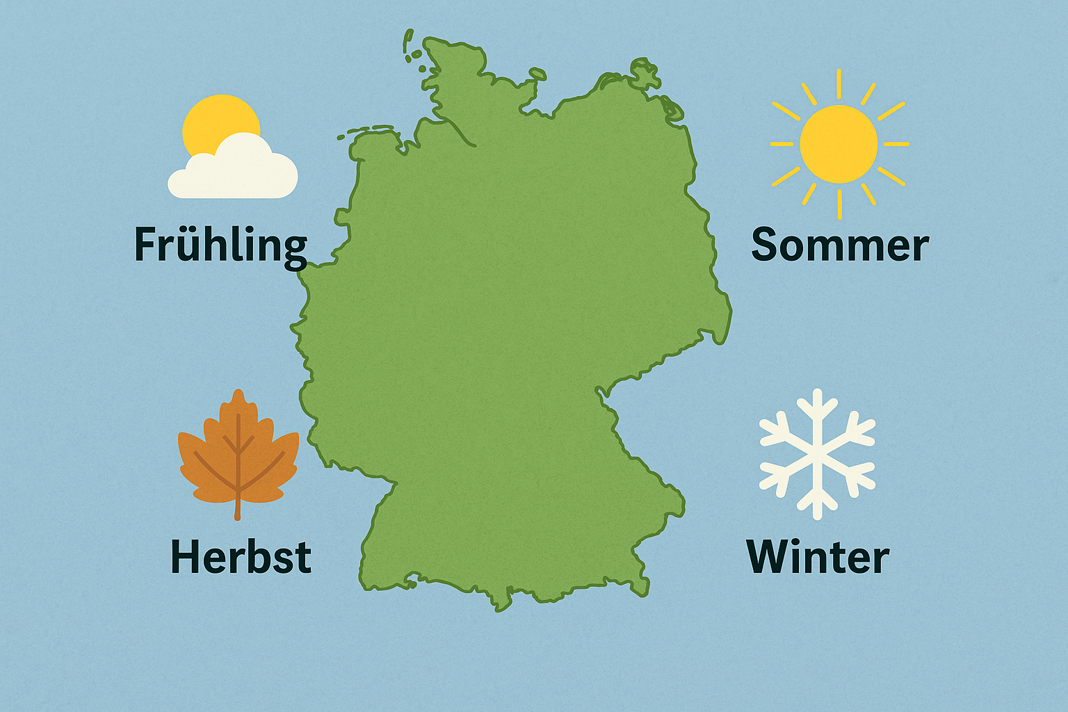 Im Sommer ist das Wetter schön. Die Sonne scheint, es ist warm oder . Manchmal gibt es mit Blitz und Donner. Es regnet kurz, und danach scheint die Sonne.
